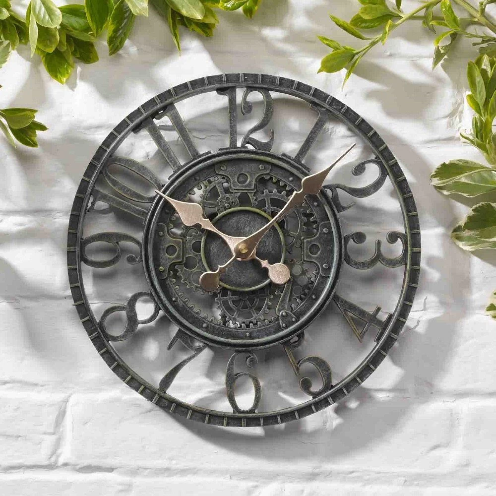 The Outside In 12″ Verdigris Newby Mechanical Outdoor Wall Clock is a stylish and functional addition to your indoor or outdoor decor. With its weather-resistant, hand-painted polyresin construction, it can withstand the elements and keep accurate time with quartz accuracy. The clock features Arabic numerals and a skip hand movement for easy time-keeping, and its 12-inch diameter makes it easy to read from a distance. Whether you want to add a touch of vintage charm to your garden, patio or kitchen, this clock is perfect for both indoor and outdoor use.