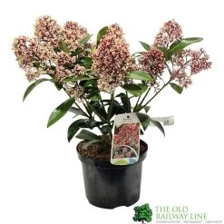 Skimmia Japonica ‘Rubella’ is a compact shrub which flowers with a fantastic amount of large panicles consisting of red flower buds throughout the Autumn & winter that open gradually in Spring to small white flowers, creating a spectacular show. These make a show during the spring months and are wonderfully fragrant, held against dark green slightly glossed ovate foliage.
